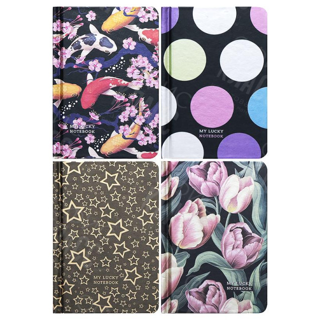 БЛОКНОТ 14*9,5СМ "МАНДАРИН" 64Л. ТВ. ОБЛ., КЛЕТКА 60Г/М2, МЕТАЛ. ФОЛЬГА 9544/-45/-46/-47