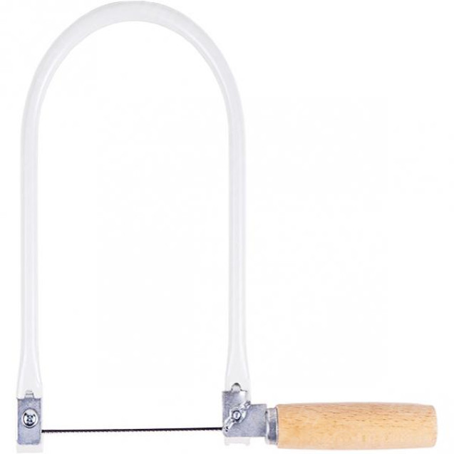 Лобзик для выпиливания по дереву. Материал металл, ручка деревянная. Размер лобзика 22х14см. рукоядка 10см.