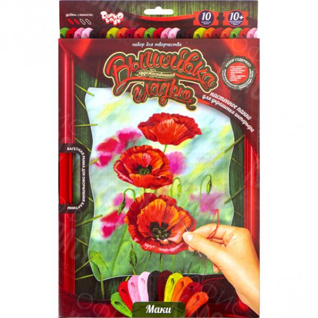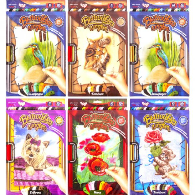 Набор рассчитан как для новичков, так и для мастеров. Представьте что Вы рисуете картину, только вместо кисточки и красок Вы используете иголку и нитки мулине! Захватывающая техника, абсолютно не сложная и очень красивая работа. Вы будете гордиться своим умением вышивать гладью. Набор содержит: холст с напечатанным рисунком, цветная схема-ключ, нити мулине (13 цветов), иголка, рамка(33х23 см), кнопки, инструкция. Уровень сложности 2 из 4. Для детей от 10 лет.
