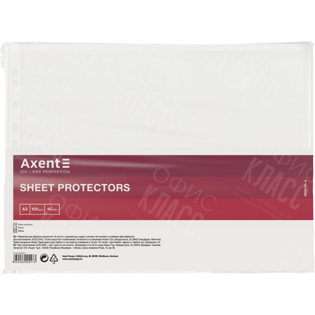 Файлы для бумаги A3 Axent 2003-00-A защищают от окружающих воздействий и механических повреждений. Благодаря наличию перфорации документы в файлах могут храниться в папках-регистраторах, в папках на кольцах, в папках скоросшивателях и проч. Это обеспечивает систематизацию и удобство в работе с документами. Файлы Axent изготовлены из первичного пластика, который обеспечивает максимальную прозрачность файла и идеальную глянцевую поверхность. Корешок надежно спаян с файлом - файл остается цельным и выдерживает длительную эксплуатацию. Формат А3 позволяет хранить и систематизировать нестандартные по сравнению с обычными документов, плакатов, чертежей, рисунков и проч.