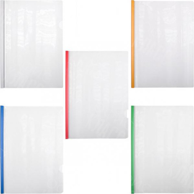 Папка скоросшиватель A4 c планкой прижимом, треугольная планка. Прозрачный скоросшиватель, скрепляет листы с помощью боковой планки. Планки из прочного цветного пластика. В таком скоросшивателе Ваши документы будут выглядеть стильно и профессионально. Цвет планки: белый, желтый, красный, зеленый, синий.