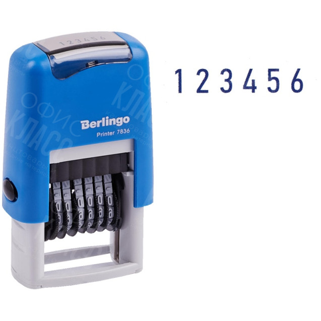 Автоматический ленточный мини нумератор Berlingo "Printer 7836". Предназначен для нумерования документов, тары, продукции. Оснастка нумератора автоматическая, пластиковая. Ленточный механизм включает в себя 6 резиновых лент. Ленты из высококачественной резины с обозначением цифр и символов. При помощи прокрутки колесиков устанавливается нужная комбинация. Сменная штемпельная подушка в комплекте. Легкая замена штемпельной подушки. Усиленные двойные стенки выкатного механизма. Резиновые подушечки. Долговечность, благодаря металлической втулке. . Высота символов 3 мм, оттиск-1 строка.