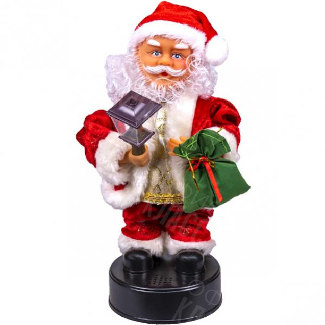 Игрушка механическая "Дед Мороз". Качает головой, руками, светится свеча и играет новогодняя мелодия. Работает на 3-х батарейках типа "АА" (не комплектуется батарейками). Размер 27 см.
