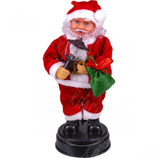 Игрушка механическая "Дед Мороз". С ветится фонарь и играет новогодняя мелодия. Работает на 2-х батарейках типа "АА" (не комплектуется батарейками). Размер 23 см.