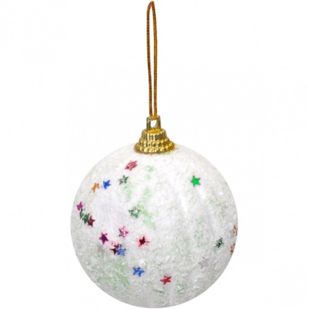 Набор шаров 6шт. "Белый с звездочками" Диаметр: 6 см. Упакованы в индивидуальную евро упаковку. Материал пенопласт, украшен частично глиттером и цветными звездочками. Цена указана за набор 6шт.