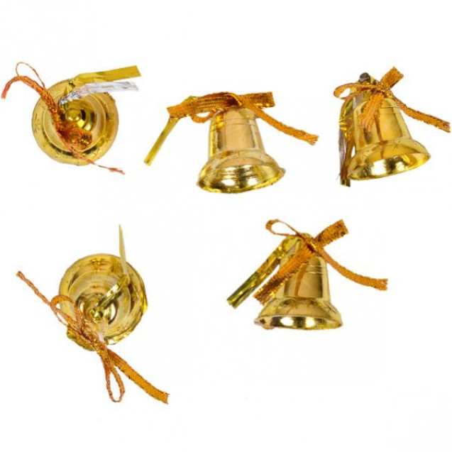 Колокольчик золотой с бантиком 12шт. Материал: пластик. Размер: 2,5×2,5 см