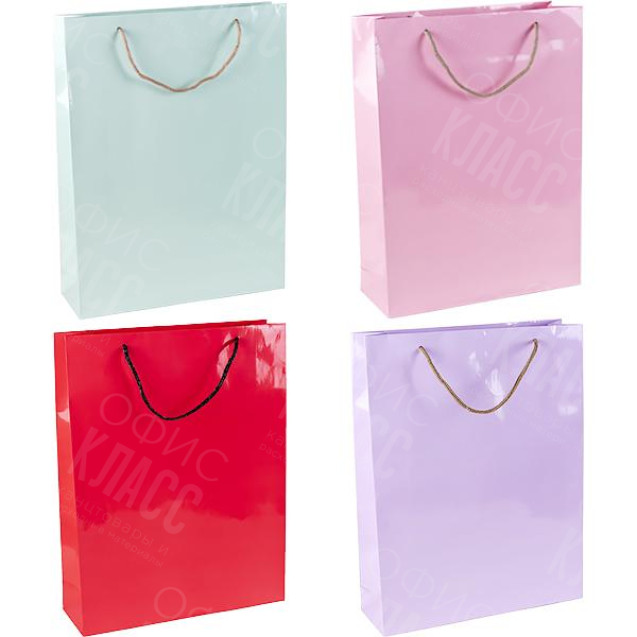 Пакет цветной большой вертикальный. Глянцевый. Ручки шнурок. Размер 25х39х8 см. Микс 12 шт. Цвета в ассортименте.