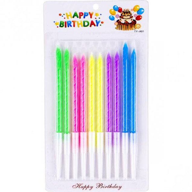 НАБОР СВЕЧЕЙ ДЛЯ ТОРТА «НЕОНОВЫЕ» 10 ШТУК ДЛИННЫЕ МИКС 10–93
