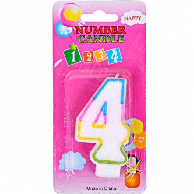 СВЕЧКА-ЦИФРА ЦВЕТНАЯ 10–113 С БЛЁСКАМИ «4»