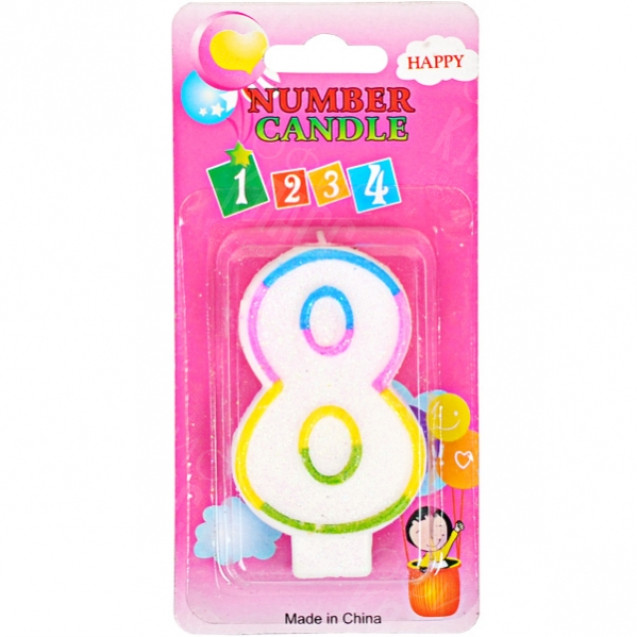 СВЕЧКА-ЦИФРА ЦВЕТНАЯ 10–117 С БЛЁСКАМИ «8»
