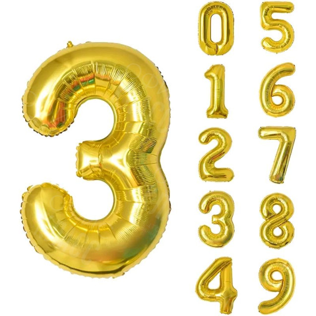 ЗОЛОТОЙ ВОЗДУШНЫЙ ШАР 101СМ ЦИФРА 3
