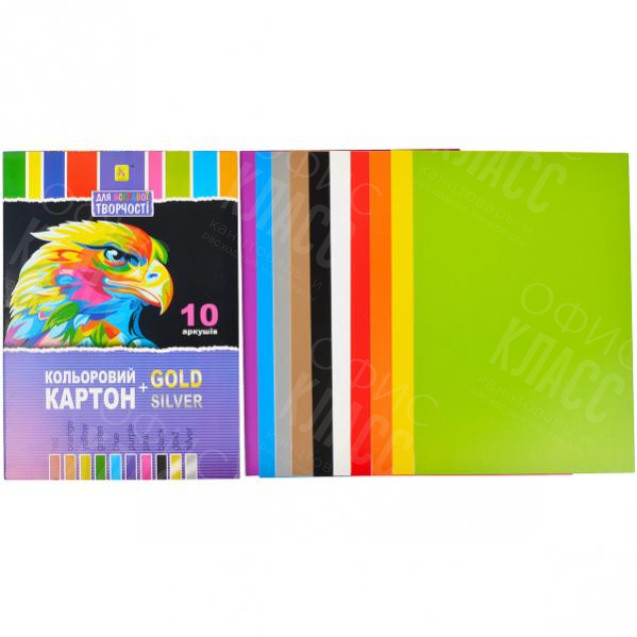 КАРТОН ЦВЕТНОЙ А4 10 ЛИСТОВ НАБОР №2 КОЛЕНКОР