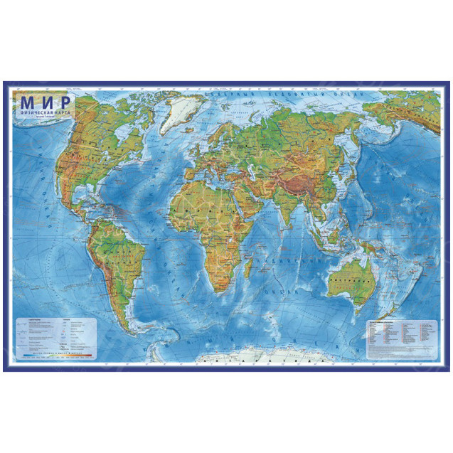 КАРТА МИРА ФИЗИЧЕСКАЯ 101Х66СМ ФИЗИЧ 1:29М НАСТЕННАЯ БЕЗ ЛАМИНАЦ ГЛОБЕН