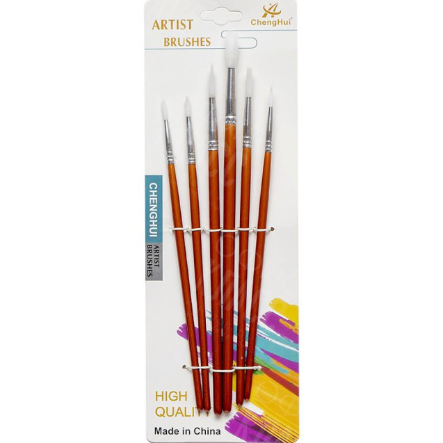 Набор кисточек 6шт. В наборе 6 круглых кистей разного размера. Используется при рисовани. Пластиковые ручки.