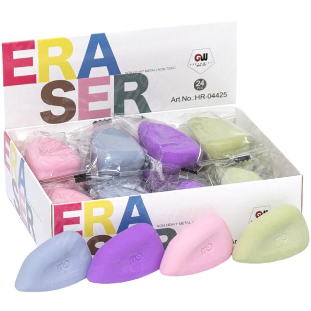 Ластик. Стирает все следы от карандаша, незаменим в черчении. В упаковке 24 шт, размер одного ластика 3х4,5 см