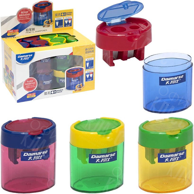 Точилка для карандашей Daimarse с контейнером – практичность и удобство Эта компактная точилка оснащена прозрачным контейнером для сбора стружки, что помогает поддерживать рабочее место в чистоте. Треугольная форма корпуса делает аксессуар удобным для захвата и использования. Острое металлическое лезвие обеспечивает точное и аккуратное заточивание без поломки грифеля. Прочная пластиковая крышка предотвращает высыпание стружки и защищает точилку при переноске. Доступна в четырех цветах: сиреневом, красном, голубом и салатовом. Размер одной точилки: уточняется. В упаковке 36 штук, цена указана за 1 точилку. Идеальный выбор для школы, офиса и творчества!