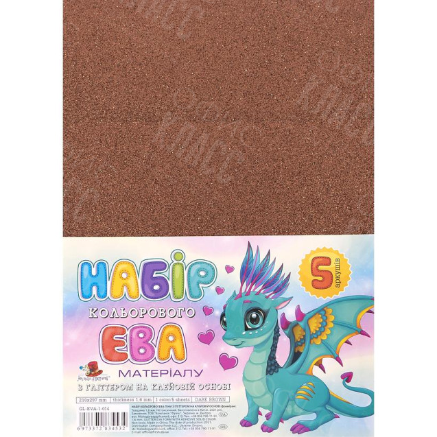 ФОАМИРАН ТЕМНО-КОРИЧНЕВЫЙ ГЛИТТЕР КЛЕЙКАЯ ОСНОВА GL-EVA-1-ADH-014 А4, 21Х29,7СМ, 1.6 ММ, ФЦ012/11