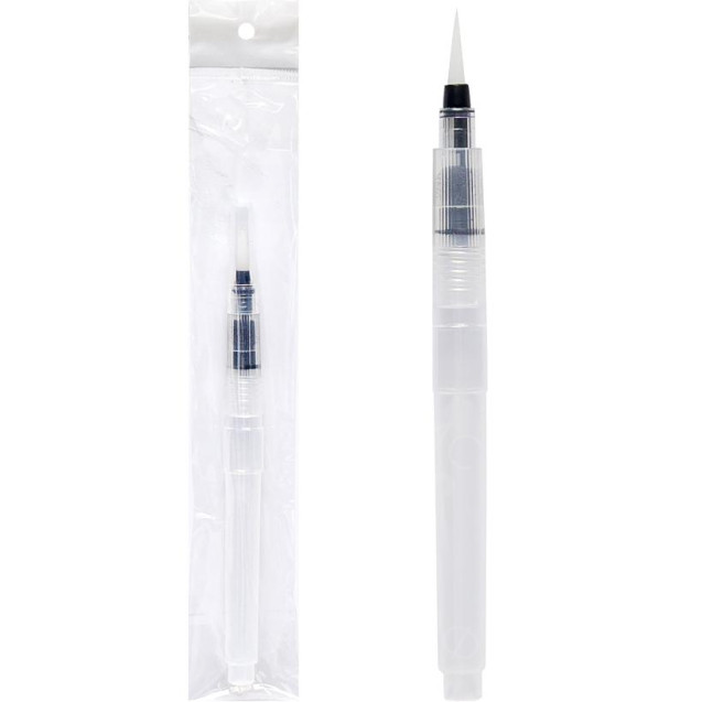 Кисть с резервуаром для воды размер М. Форма и качество волоса как у художественного кисти, широкое отверстие для налива воды, предназначен для работы с акварельными карандашами, акварельными и другими водорастворимыми красками. Длина кисти 15 см. Длина ворсы 1,6 см.