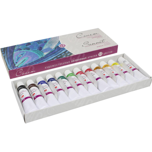 Набор акриловых красок "Сонет" 12 туб по 10 мл в картонной коробке.