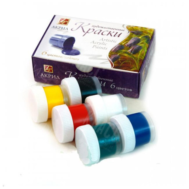 КРАСКИ 6 ЦВЕТОВ АКРИЛОВЫЕ ХУДОЖЕСТВЕННЫЕ 15МЛ НАБОР 22С 1408-08 ЛУЧ