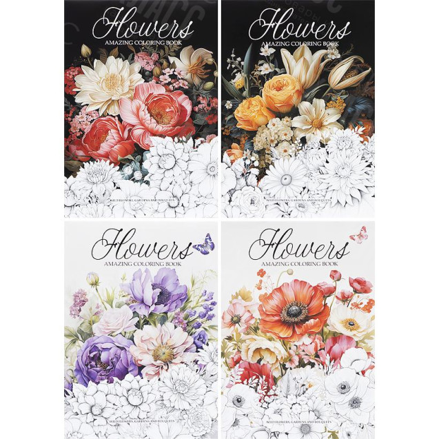 РАСКРАСКА А4 "ЦВЕТЫ" 16 ЛИСТОВ 23362-23365/Р095/1,2,3,4-228969
