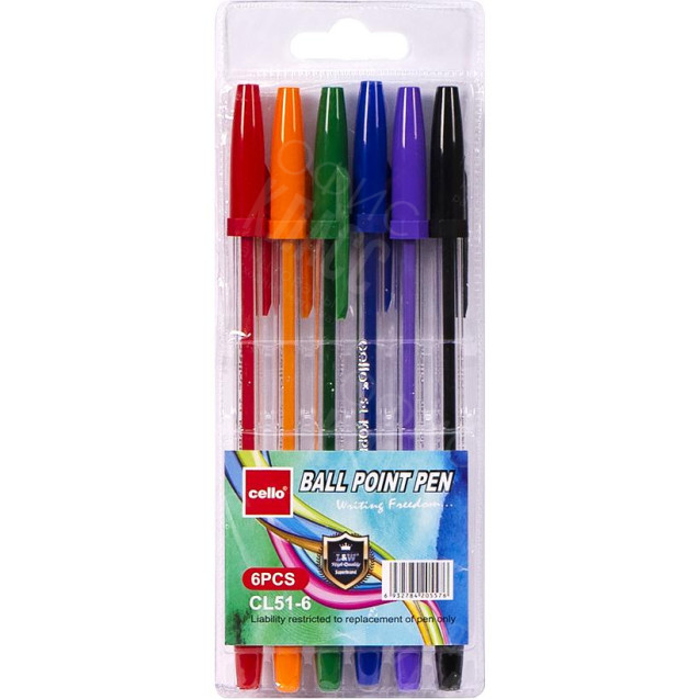 НАБОР РУЧЕК ШАРИКОВЫХ "CELLO" CL51-6 "КОРВИНА" 6 ЦВЕТОВ