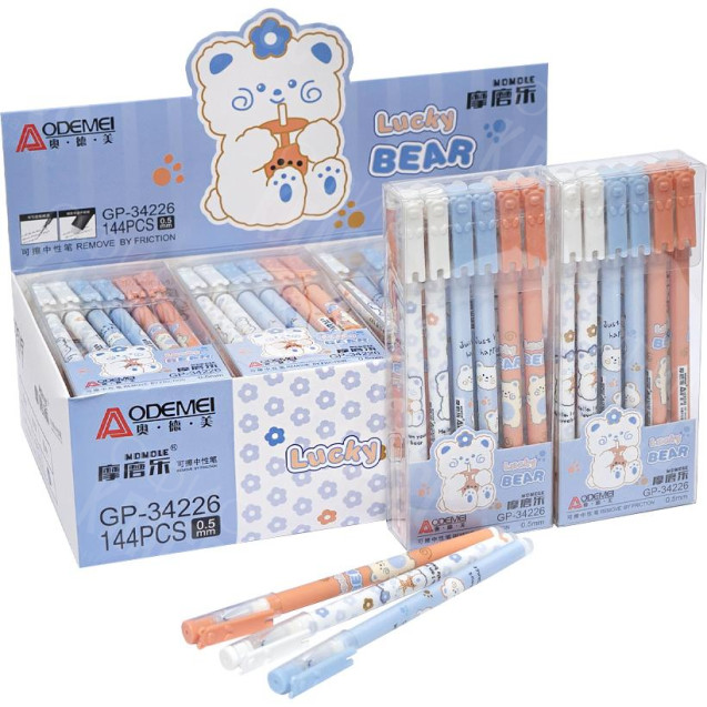 Ручка гелевая "пишет-стирает". Пластиковый цветной с рисунком корпус. Толщина 0,5 мм. Сменный стержень. Цвет синий .