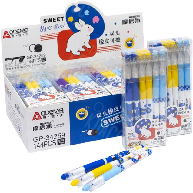 Ручка гелевая "пишет-стирает". Пластиковый цветной с рисунком корпус, резиновый грип. Толщина 0,38 мм. Сменный стержень. Цвет синий .