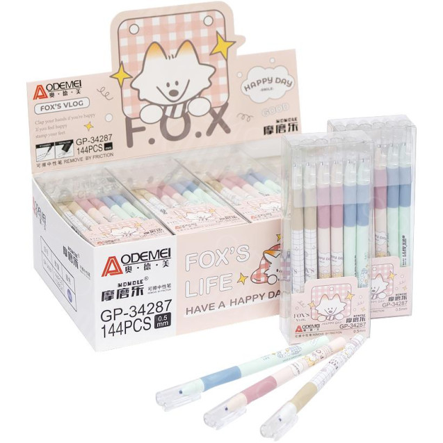 Ручка гелевая "пишет-стирает". Пластиковый цветной с рисунком корпус, резиновый грип. Толщина 0, 5 мм. Сменный стержень. Цвет синий .