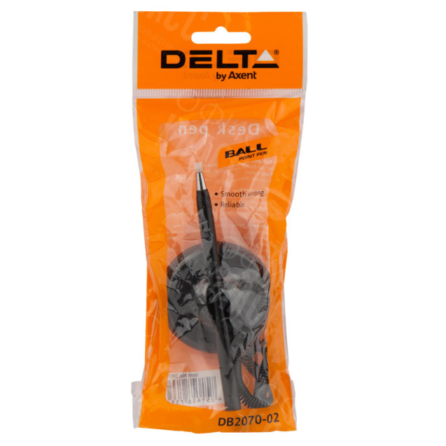 Ручка шариковая Delta Desk pen легко крепится к поверхности благодаря подставке с липким слоем. Крепится к подставке благодаря шнуру-спирали длиной до 1,5 м. Такая ручка не теряется и всегда доступна в нужный момент - при работе с клиентами, в абонентских службах, и даже в офисе и дома. Пишущий узел - 0.7 мм. Цвет чернил: синий.