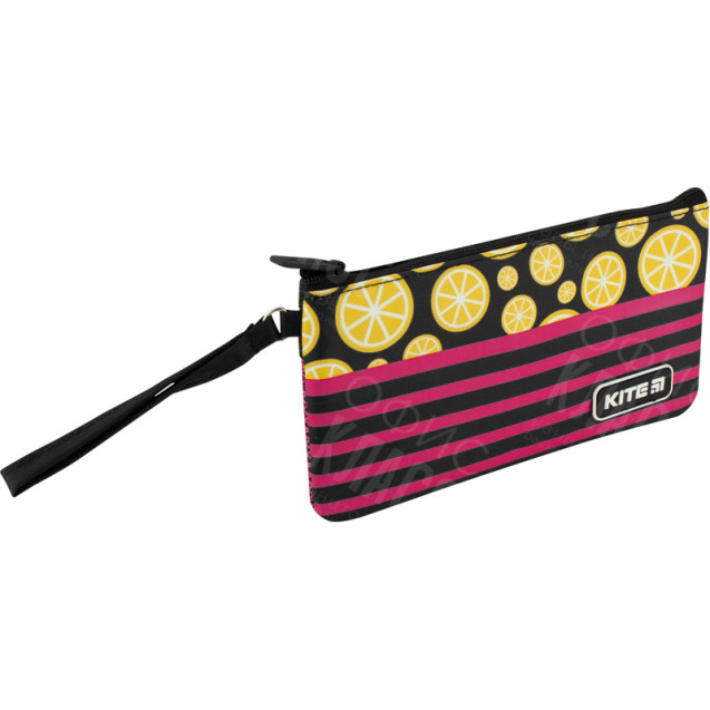 Мягкий пенал Kite K20-664-3 из прочного полиэстера с оригинальным паттерном в виде дольки лимона. Внутри легко поместятся все канцелярские принадлежности. Можно использовать вместо небольшой сумочки или косметички. Удобно брать с собой, повесив на руку за специальную петлю для переноски.
