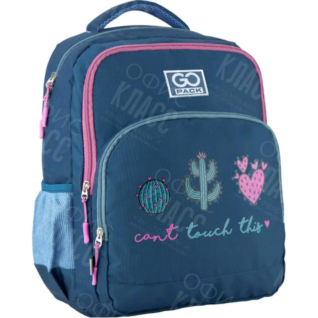Рюкзак GoPack GO20-113M-2 на возраст 6-8 лет. Кактусы на передней панели рюкзака так и хочется потрогать, но строгая надпись предупреждает: "Do not touch this!"
